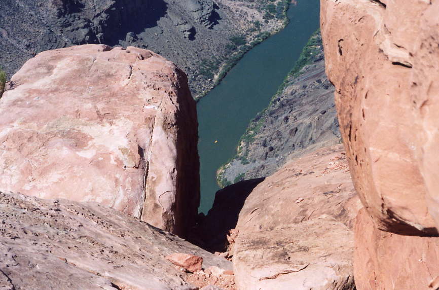 almost straight down from the ledge to the river.