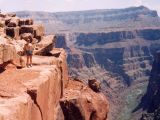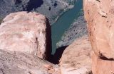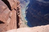 A few kilometers southwest, downriver, is Lava Falls, reported to be the world's most severe whitewater rafting spot. There is a 2.5 Km (1.5 mile) trail that drops down to the river, an average incline of 32%. Stories of loose rock (scree), glass-sharp obsidian, and the occasional rattlesnake made it quite obvious that this trail was not for a hiking novice like me. The view from the rim is satisfying enough for me without confronting the dangers of Lava Falls Trail.