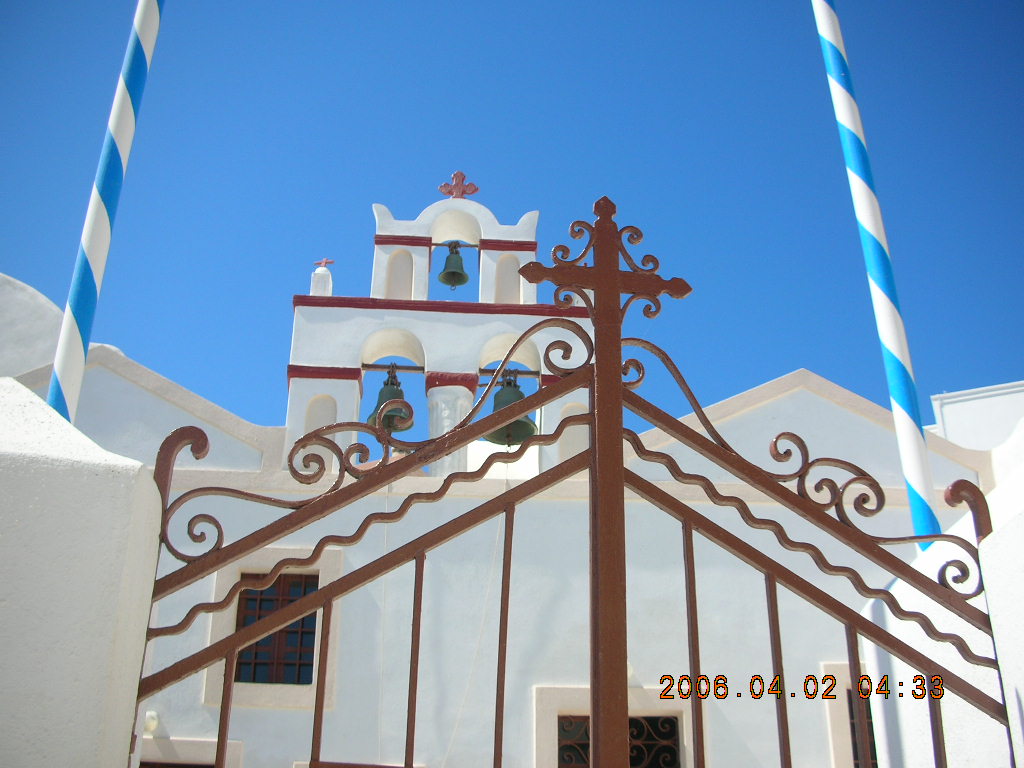 309. 2006 eclipse trip -- Santorini shopping stop -- blue-dome church