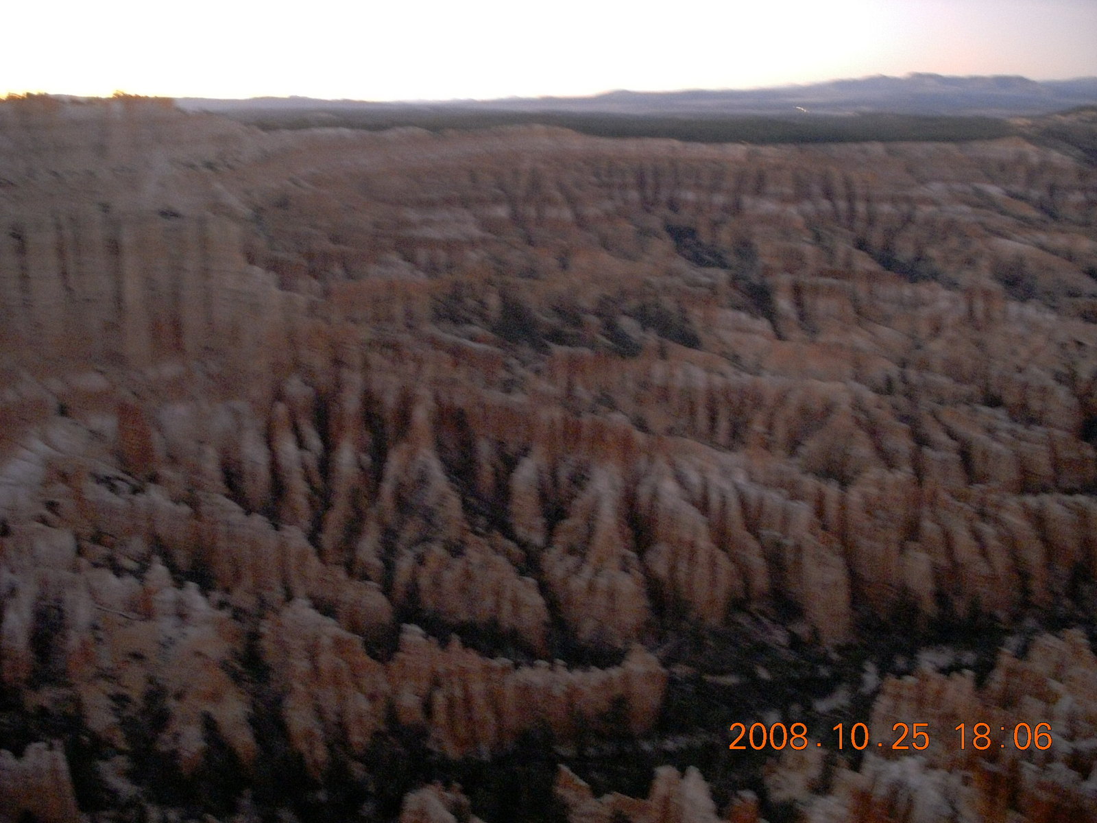 298. Bryce Canyon - sunset view at Bryce Point - town of Tropic in low light