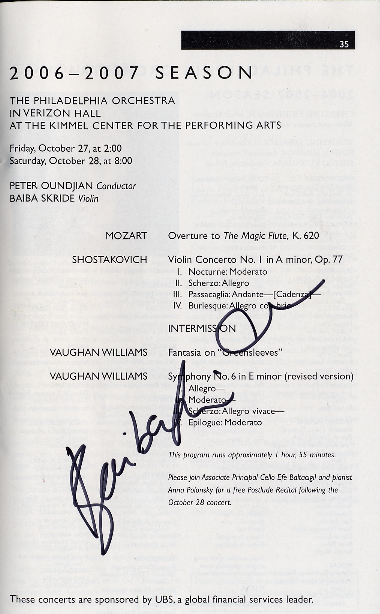 228. Philadelphia Orchestra program 2006oct27 autographed