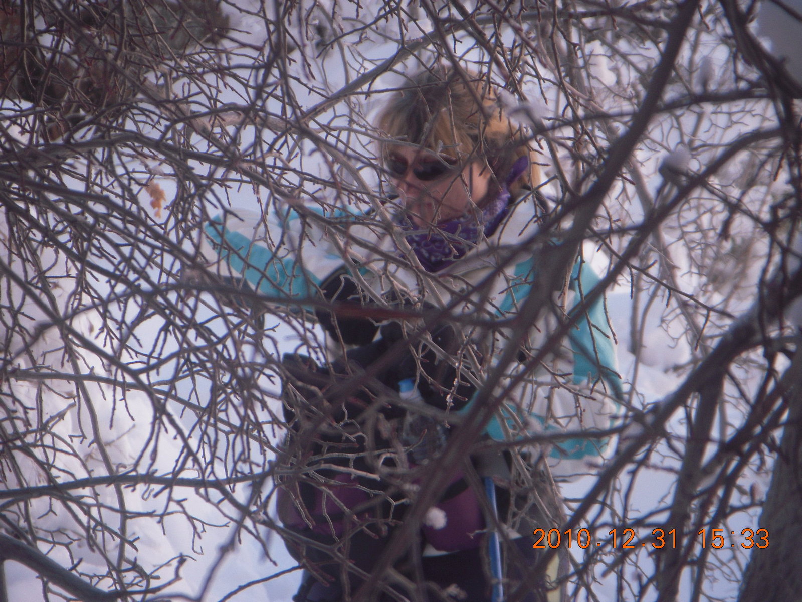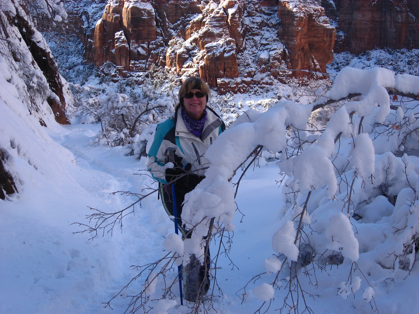 2011 January 13, Thursday, 7fd-oli.jpg * Zion National Park trip - Hidden Canyon hike - Sheri behind trees