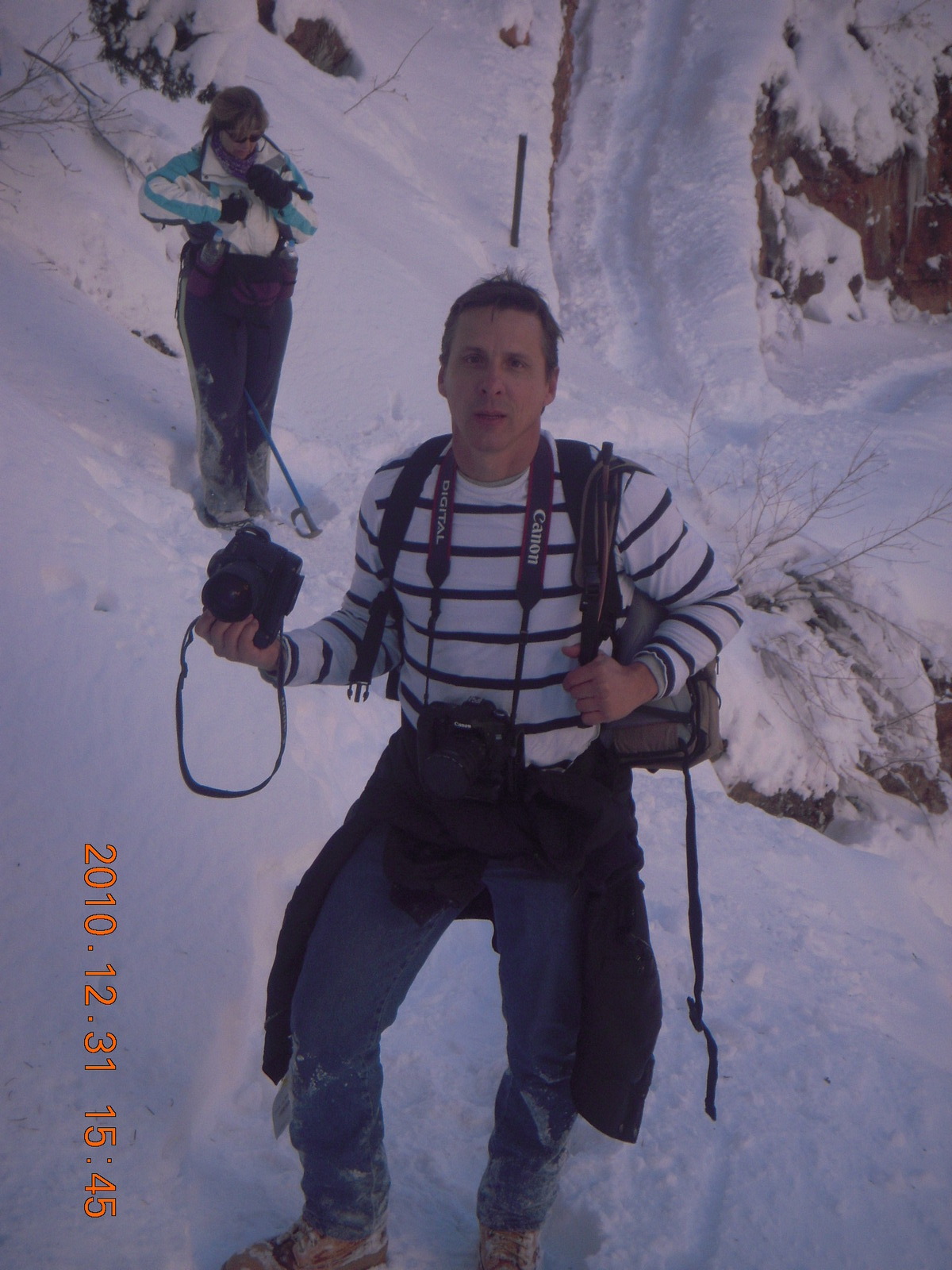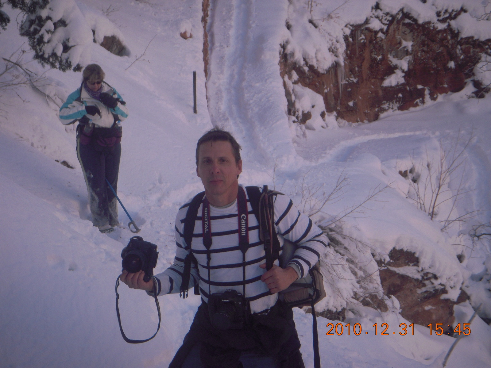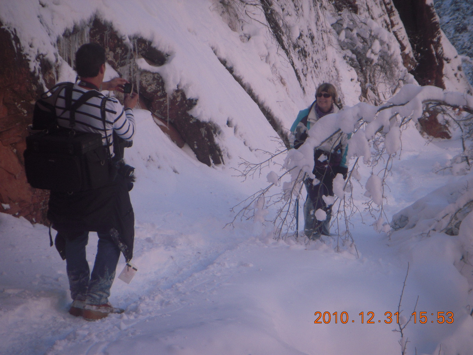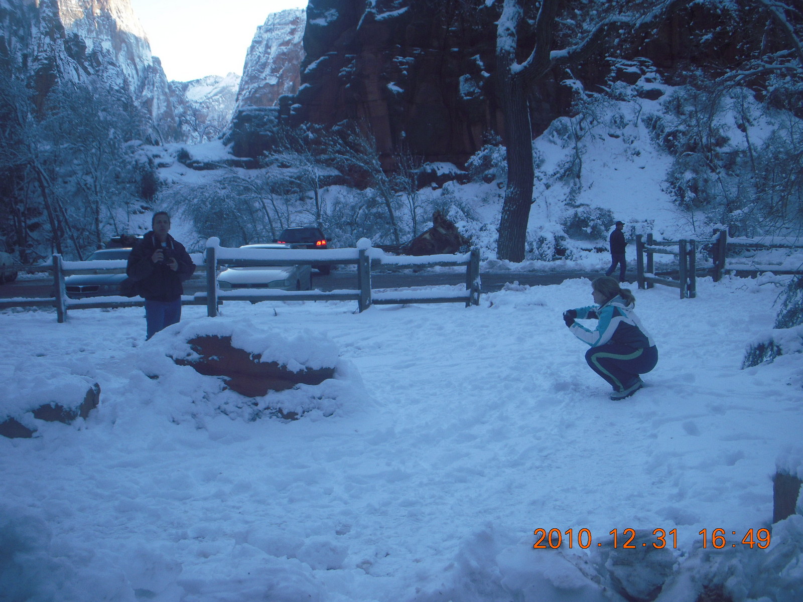 2011 January 13, Thursday, 7fd-om7.jpg * Zion National Park trip - Sheri taking a picture of Luiz