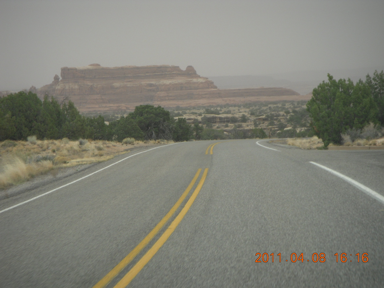 293 7j8. Canyonlands Needles drive in the haze
