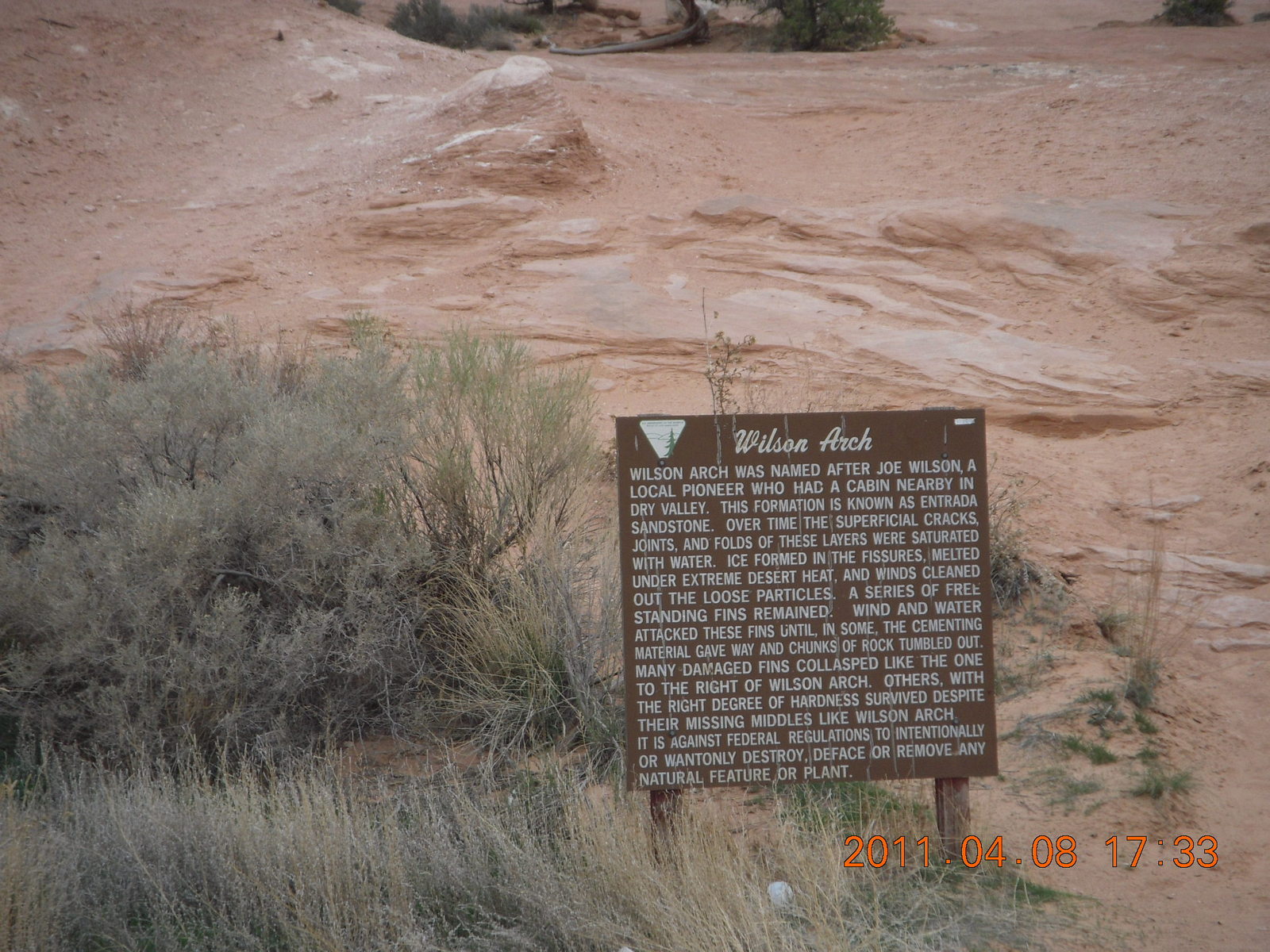 327 7j8. drive from Needles back to Moab - Wilson Arch sign